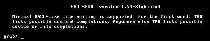 If the vmlinuz symlink does not exist, use the full path to the kernel in /boot. Example: linux /boot/vmlinuz-3.2.0-14-generic root=/dev/sda1 ro | |