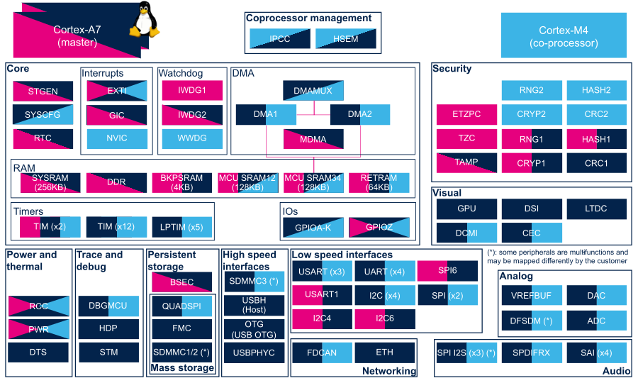 - Arm dual core Cortex-A7 secure (Trustzone), running a Secure Monitor or Secure OS like OP-TEE
