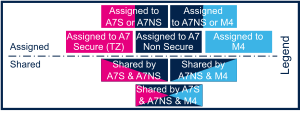 大多数 peripheral 只能分配给一个 context,比如USART 和 I2C。 有一些则可以在多个 contexts 之间共享,一般是系统的 peripheral 如 PWR 和 RCC。