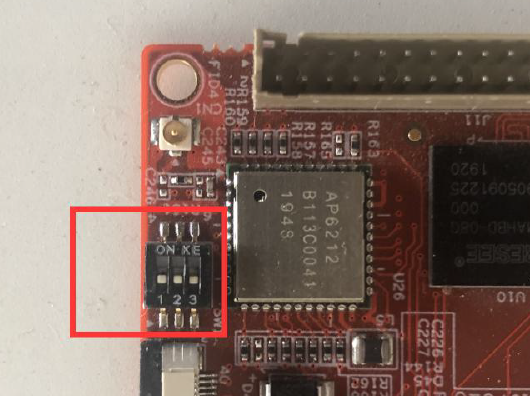 在 Wi-Fi 蓝牙天线接口的旁边有一个拨片开关是用来设置启动配置的,实测和下图中定义的不符?